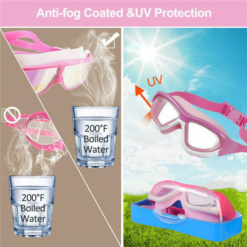 100% ANTI-UV lens on all swimming goggles lenses. Tinted lens to protect the eyes from the sun, Increased depth of field and reduced glare. Let your kids or family have full funny enjoy swimming.